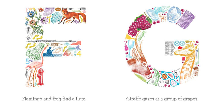 A beautifully illustrated, graphic alphabet book with a fun search-and-find twist.