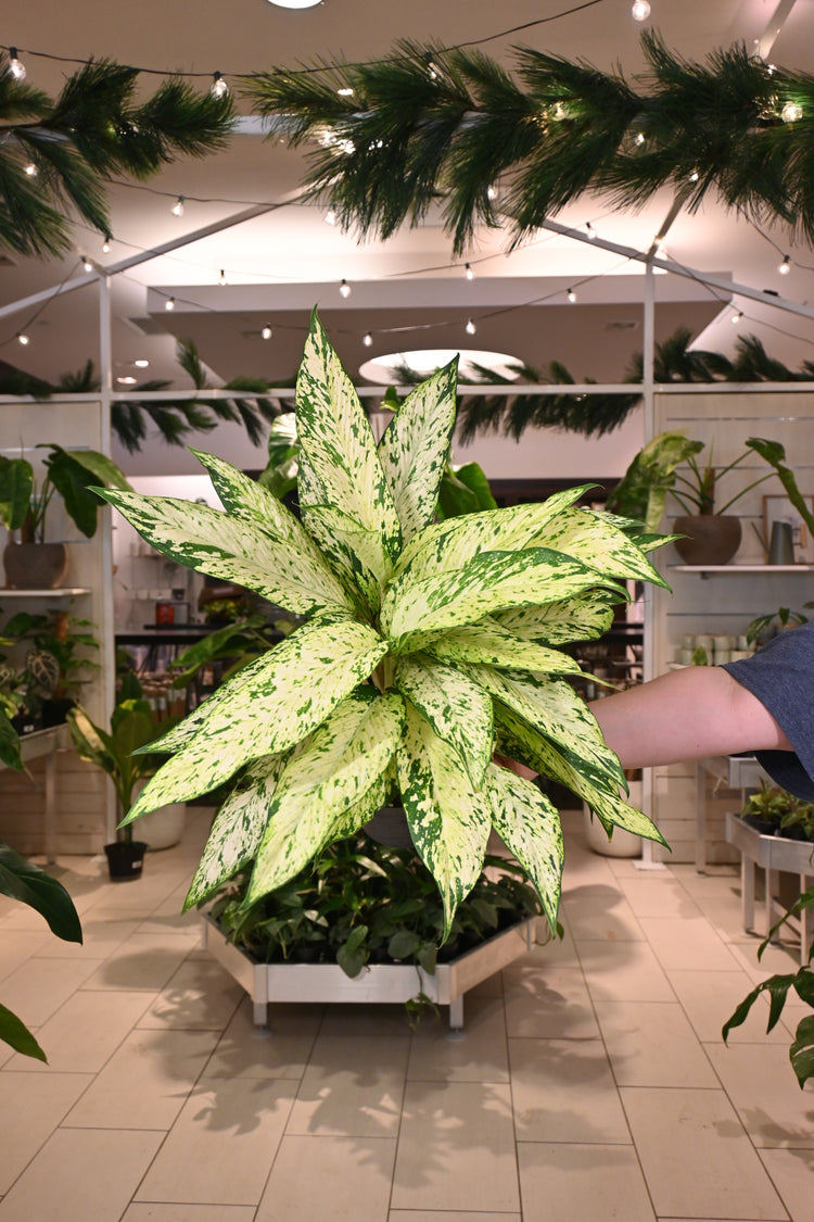 Aglaonema are great beginner plants. Not only are the incredibly easy-going, they are hardy & resilient plants. The crave a semi-humid environment & thrive in bright, filtered light. Water your aglaonema when the soil is dry about 2” down from the top of the pot.