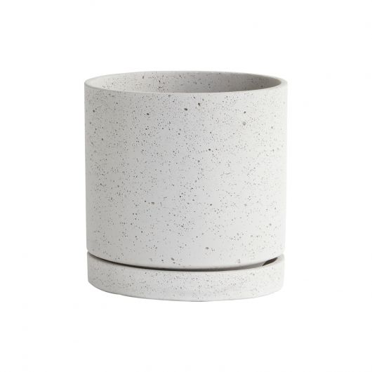 With a modern terrazzo finish, the Callahan Pot is designed for indoor or outdoor use. It features a saucer and a drainage hole, and is handmade from cement for a sleek and modern look.