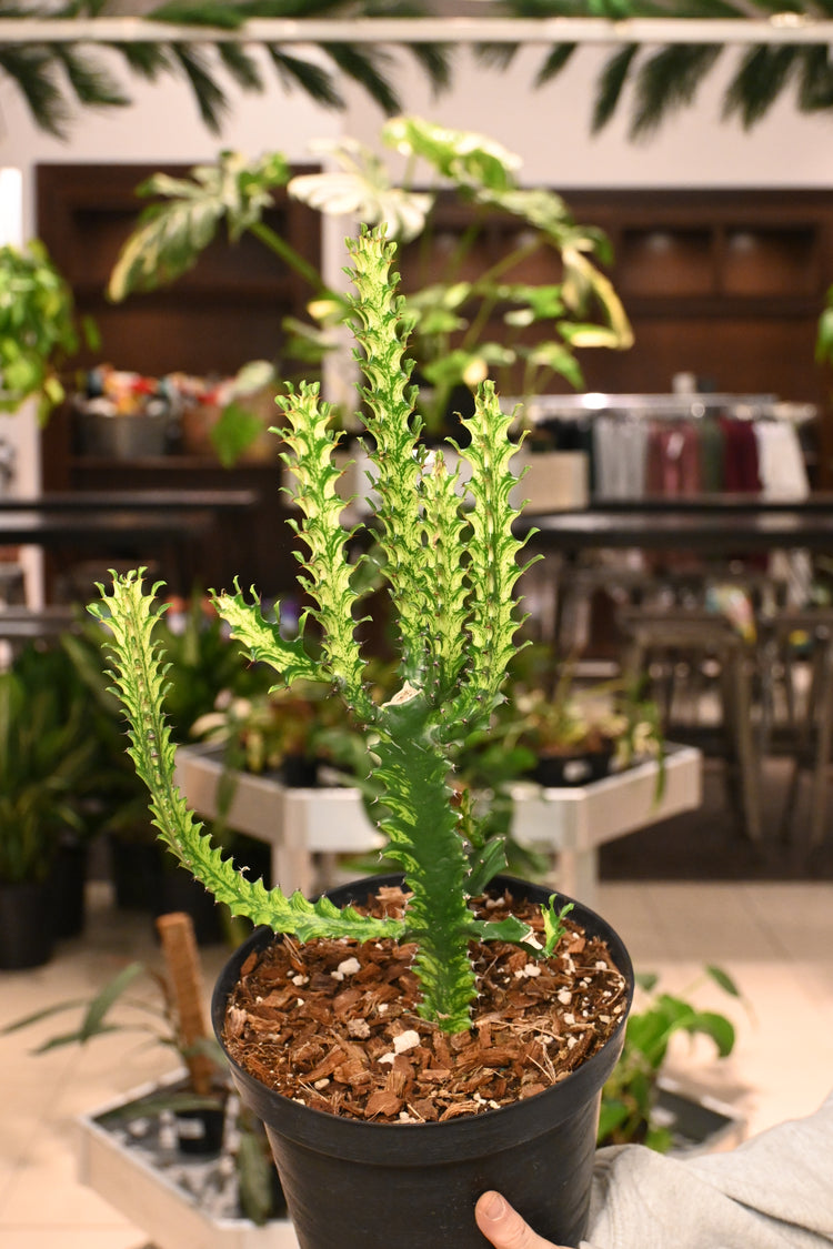 These desert plants love a lot of sun. Give them a thorough drink of water, but let them dry out completely between waterings. They can tolerate a more dry than humid growing condition.