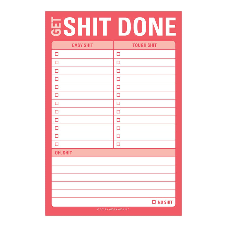 A featured gift for dad! Small Knock Knock sticky notes are great for brief missives, but sometimes you've got a little (or a lot) more to say. Enter the latest addition to our sticky family. They're kind of a great big deal. When your need to get shit done combines with your desire to purchase funny sticky notes Hit the Knock Knock stationery shop for all your writing needs 4 x 6 inches, 60 sheets