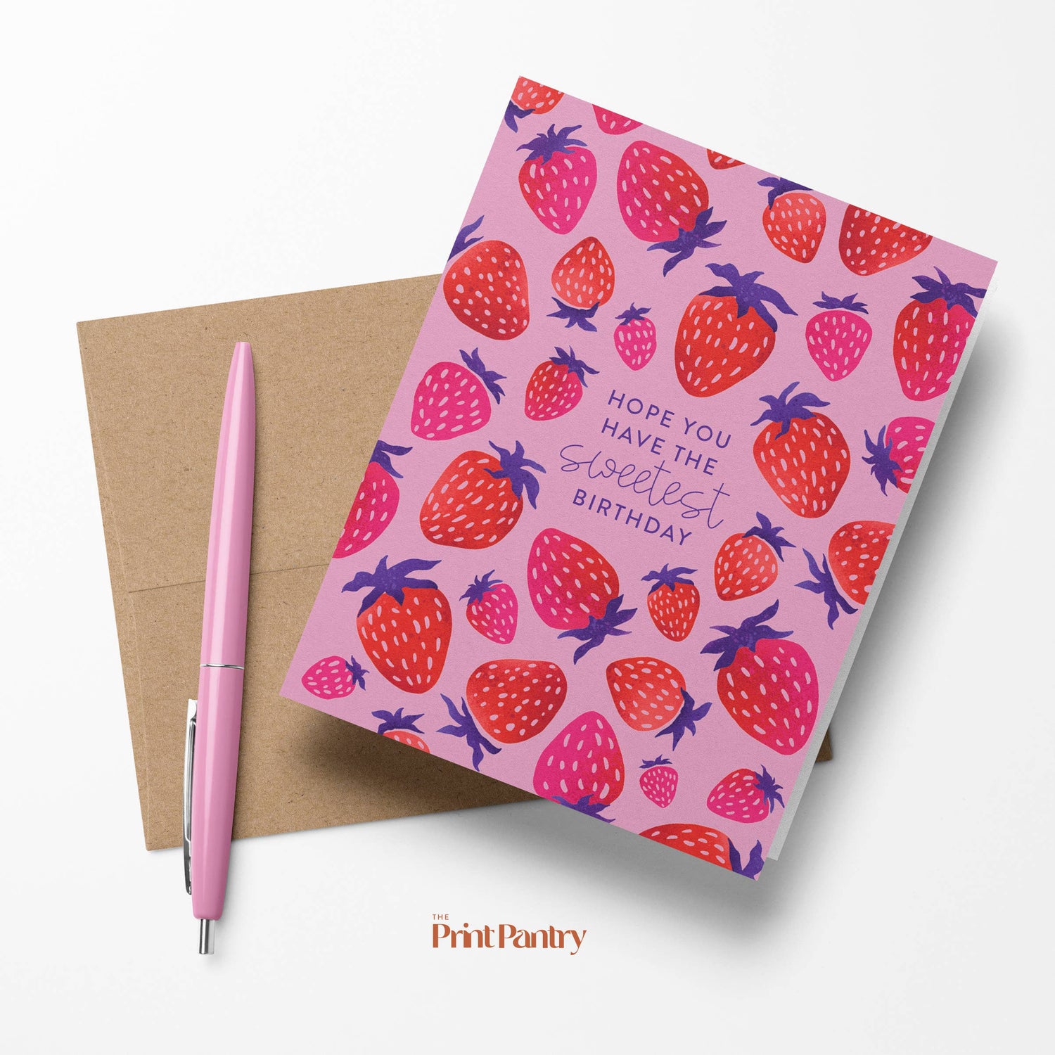 This Strawberry Birthday Card is perfect for sending festive birthday wishes to a friend or loved one!
