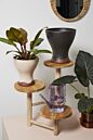 Whether adding height to a drop-in plant or displaying fresh or dried florals, the small, curvy Kanako Pot elevates any arrangement with its unique, flared shape & organic finish of a black reactive glaze on a brown terracotta base. Create a chic, dimensional look for a flower or plant display without the addition of a stand.