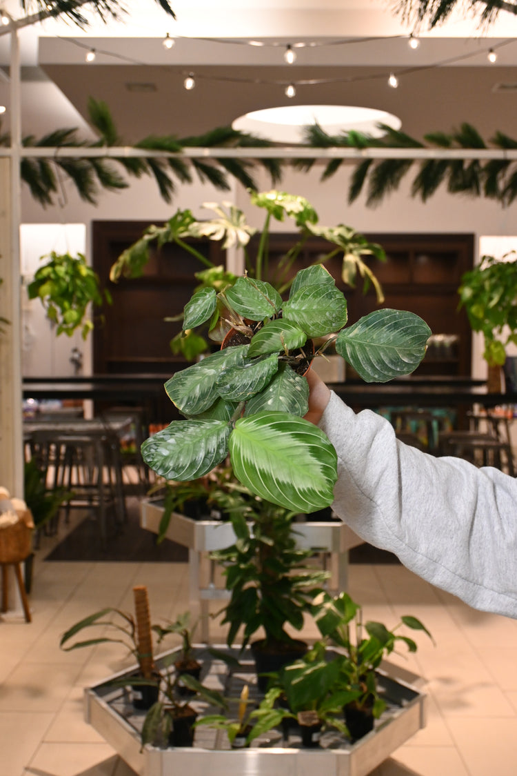 Calathea & Maranta are both pet friendly & beautiful plants. They have a reputation for being picky with their care routine. Keep the soil consistently moist & place them in a bright but filtered light area with a lot of humidity. Near a bathroom window would be a great place for these plants. Keep your Calathea & Maranta in a chunky potting mix.