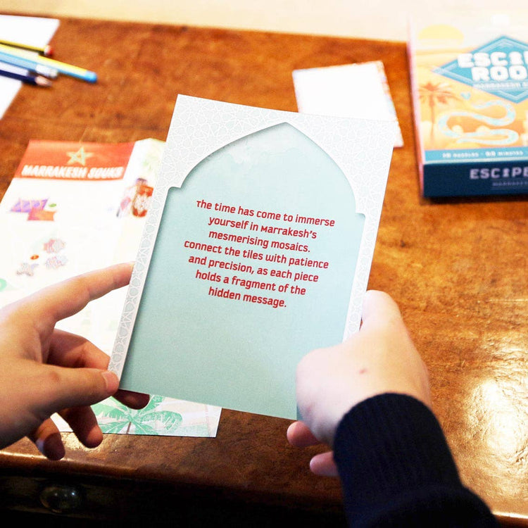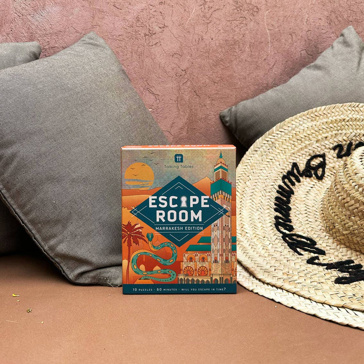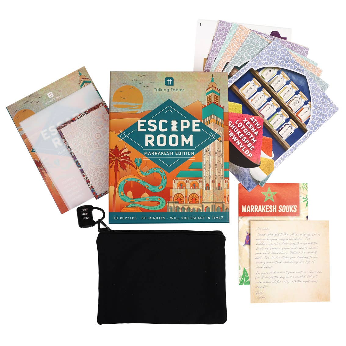The action takes place in the back streets of Marrakesh, in a game that will challenge and delight your customers. The concept sees the discovery of an ancient and powerful time-controlling relic, the Eye of Marrakesh. Unfortunately, the sinister Sand Serpents mob want to misuse its potent power. Players must navigate through Marrakesh’s markets, and decode 10 intricate puzzles in tiles, maps, rugs and pottery to thwart the evil Sand Serpents. This game includes a video introduction and innovative games including heat reactive technology. This thrilling race against time is a collaborative game for players aged 9+ years. Escape Room Contents: 1 Instruction Booklet 1 Notepad 10 Puzzles 4 Vellum Sheets Add as a Christmas stocking stuffer gift for friends and families.