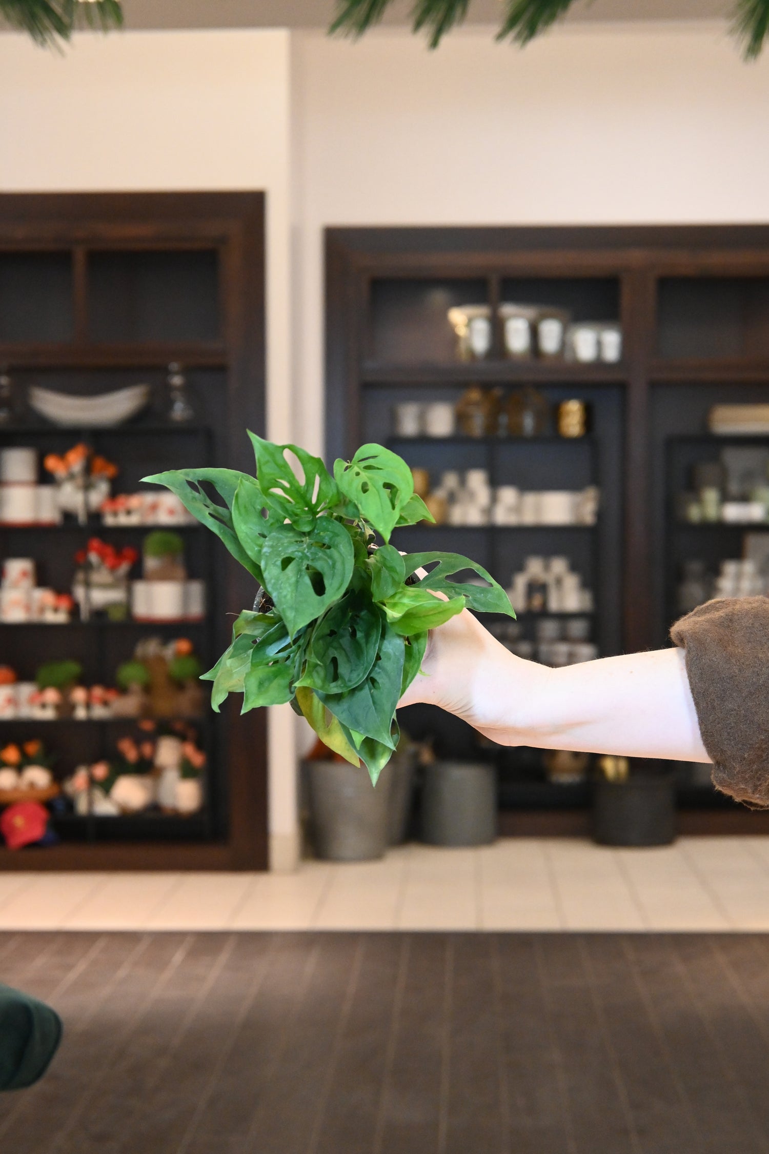 Monstera plants prefer bright, but filtered light & want to be watered when their soil is about 50% dry. Keep your Monstera plants in a chunky potting mix.