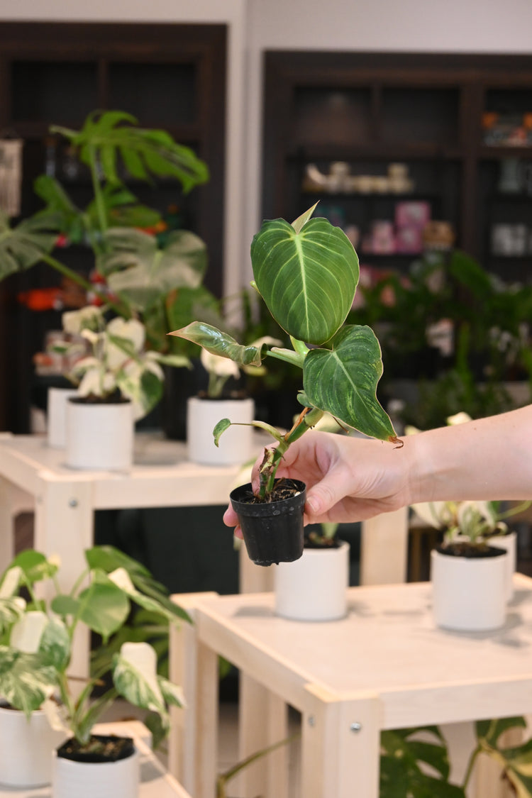 Philodendron plants are easy-going and generally forgiving with their care routine. They thrive in bright, filtered light conditions but can tolerate medium light as well. Variegated Philodendron plants crave a higher light source to help keep their variegation. Water your Philodendron when the soil is dry about 2” down from the top of the pot. Keep your Philodendron in chunky potting mix.