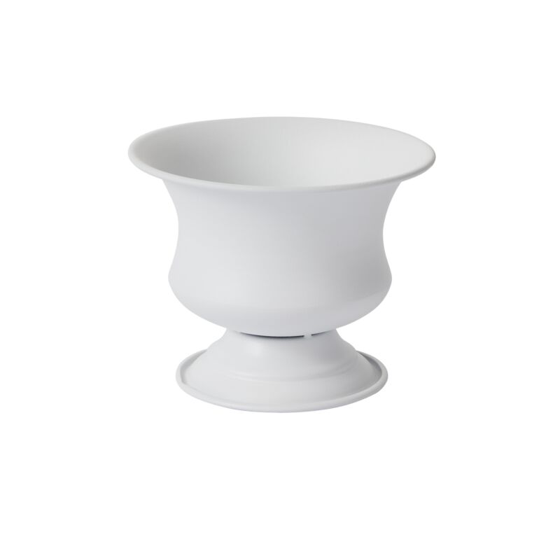 With a talent for both blending in & standing out, the large, lightweight metal Sidney Urn is the go-to for floral & event designers with its clean matte white finish, classic shape & ability to brighten any tablescape while creating dimension.