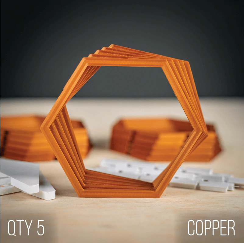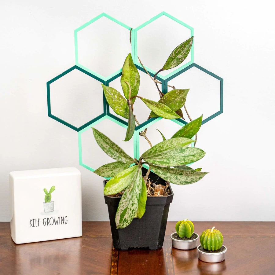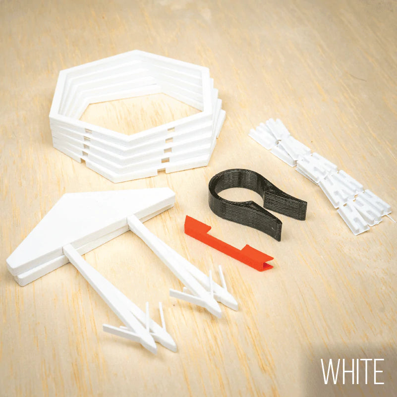 Customize your own unique trellis for your unique plants! Each kit includes colored hexagons used to design and build a unique trellis. Trellises can be broken apart and redesigned as plants grow and change. Expansion packs are also available, allowing the trellis to grow with your plant.