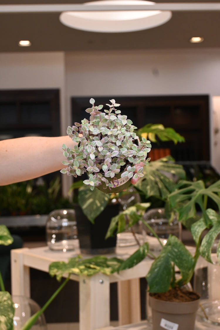 Tradescantia thrive in bright but filtered light environments. Keep them in a chunky, well draining soil and water when the soil is just about dried out completely. A humid environment is best!